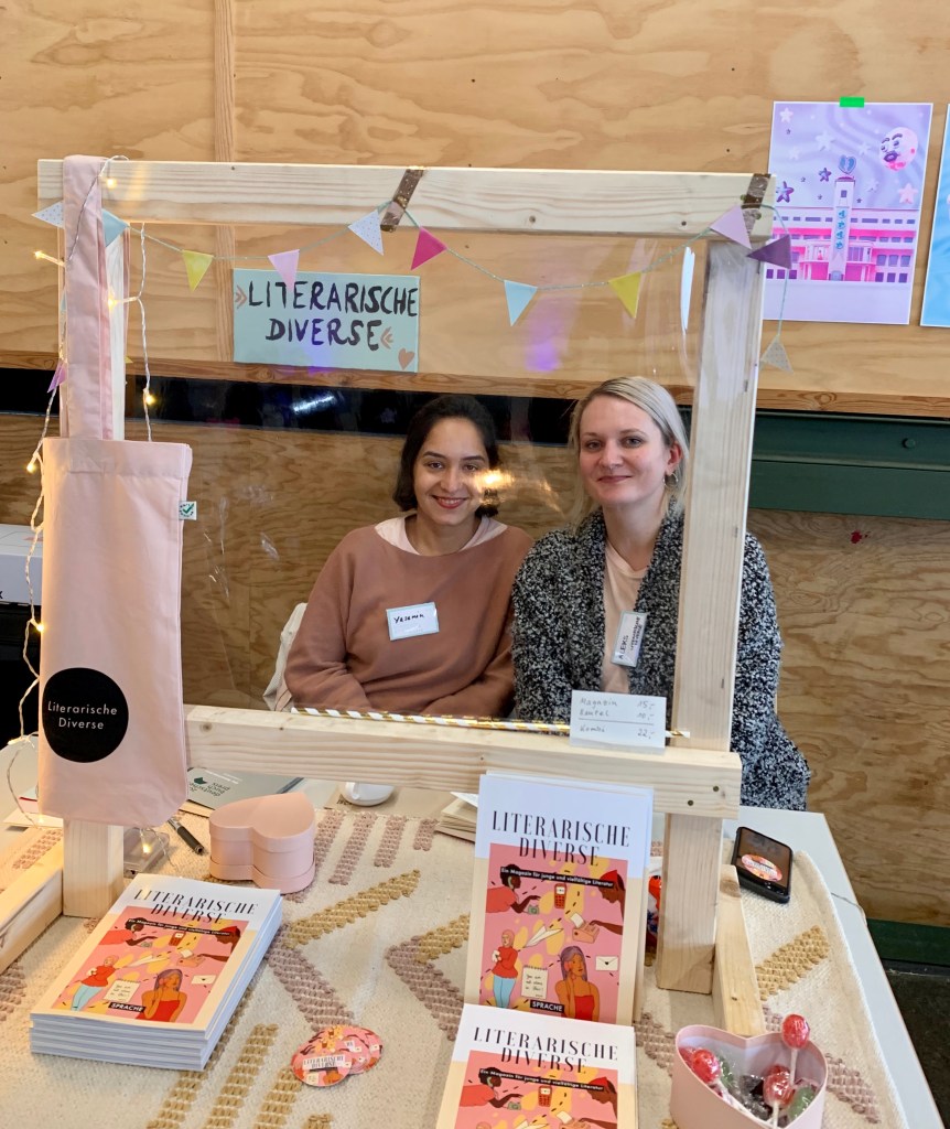 Nach der Abgabe meiner Kontaktdaten bin ich erstmal in Ruhe durch beide Hallen geschlendert. Die Hallen waren sehr unterschiedlich: In der einen kam man sich ein bisschen vor wie in der Disko, mit DJ-Pult und Leuchtröhren. Die zweite wirkte wie ein helles, offenes Loft. Dort wurden auch Essen und Getränke verkauft, wer also vom Bummeln hungrig geworden ist, konnte direkt den knurrenden Magen füllen. Mein Plan war, mir einmal alles anzuschauen und dann eine zweite Runde zu den Ständen zu machen, an denen mir etwas ins Auge gesprungen ist oder die ich mir im Vorfeld als interessant gemerkt hatte. Gesagt, getan: Ich bin zwischen den liebevoll dekorierten Ständen durchgegangen und habe hier und da in einer Publikation geblättert oder mit Aussteller*innen geschnackt. Magazine wie Sand oder Word waren für mich eine neue Entdeckung, die mich direkt begeistert hat. Besonders hat mich gefreut, einige Menschen, die ich von #bookstagram kenne, in echt zu treffen. So ist mir ein Mitglied der Lesekreuzung über den Weg gelaufen und auch bei Yasemin von der Literarischen Diverse konnte ich Hallo sagen. Ebenso stand ein Besuch bei den Schnipsel-Kolleg*innen von Die Epilog und Das Wetter an. Am Stand vom Nordverlag habe ich mit dessen Gründerin Camilla gesprochen und habe nicht nur mehr über die norwegische Autorin Ingvild Lothe erfahren, sondern auch direkt ihr Debüt „Warum bin ich so traurig, wenn ich doch so süß bin?“ gekauft. Für mich war es total interessant, direkt mit Verleger*innen und Herausgeber*innen in Kontakt zu kommen und so mehr über die Publikationen und die Ideen dahinter zu lernen. Es war mit das Schönste, bei der Indiecon so viele Menschen zu treffen, die sich für Literatur begeistern!